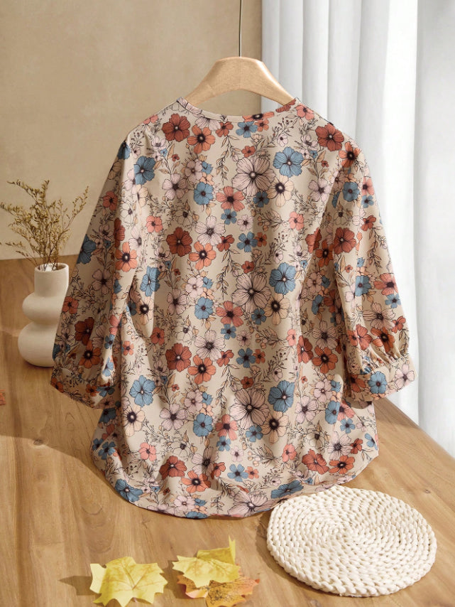 - Blusa casual con cuello en V y estampado floral